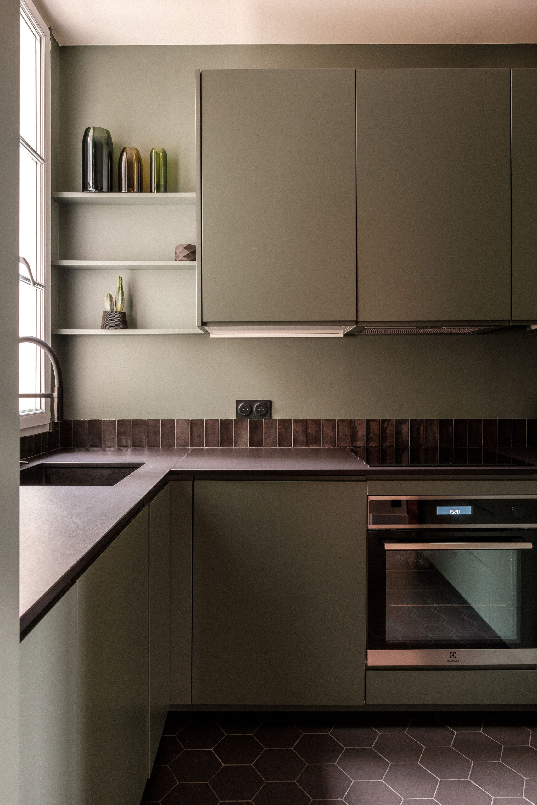 Travail chromatique affirmé : Définition d’une palette colorée singulière pour chaque pièce, en harmonie avec les matériaux existants.